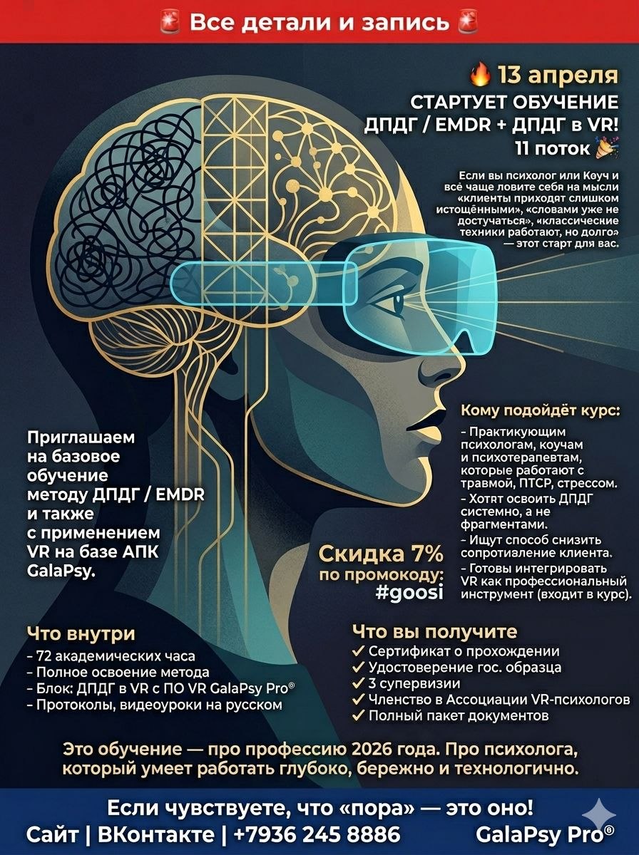 13 апреля стартует обучение EMDR / ДПДГ + очки виртуальной реальности VR